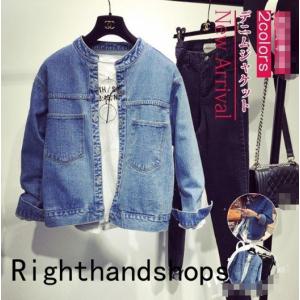 秋新作 デニムジャケット レディース Gジャン 長袖 立ち襟 ノーカラー デニムコート ショート丈 カジュアル アウター 春秋 きれいめ おしゃれ