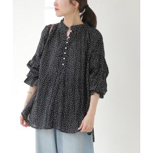 ブラウス シャツ コットンボイルクリンクルタックフリルプルオーバー(ドット柄) レディース
