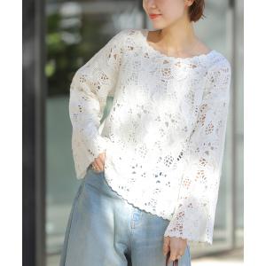 ニット セーター エンブロイダリークロシェレースプルオーバー レディース