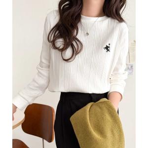 tシャツ 着るだけ、モチベUP!抜群の着回し力で毎日に寄り添う♪オーガニックランダムテレコ胸元刺繍ロンT(長袖) レディース