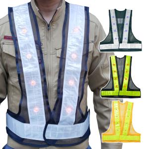 LED付 安全ベスト 60mm 反射ベスト フリーサイズ 高輝度 反射材 メッシュ素材 通気性 視認性抜群 軽量 マジックテープ 着脱簡単 調節可能 ネームタグ付