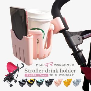 ベビーカードリンクホルダー ドリンクホルダー カップホルダー スマホ ベビーカー用 ハンドル 哺乳瓶 水筒 タンブラー バギー 便利グッズ