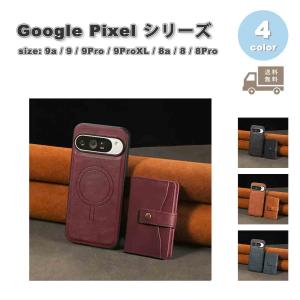 Google Pixel 9a / 9 / 9Pro / 9ProXL / 8a / 8 / 8Pro 背面ケース PUレザー 取り外し可能磁気財布 ウォレット ケース 全4色 グーグル ピクセル 耐衝撃 送料無料