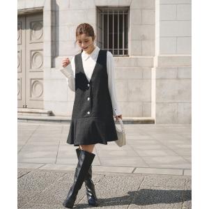 ワンピース ラメ釦ツイードミニジャンスカ / 1215240913