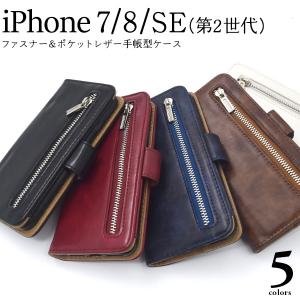iPhoneSE3 SE2 iPhone8 iPhone7 手帳型ケース マグネット ファスナーポケット付 PUレザー アイフォンケース iPhone7 スマホケース