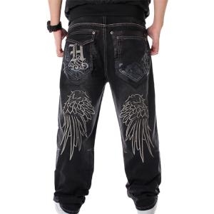 【並行輸入品】Man Loose Baggy Jeans Hiphop Skateboard Embroidery Denim Pants M