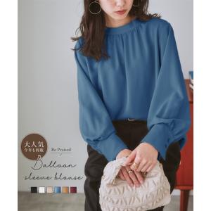 大きいサイズ レディース とろみ素材 バルーンスリーブ ブラウス 3L/4L/5L ニッセン nissen