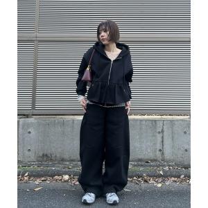 パーカー 裏起毛スウェットペプラムジップアップパーカー レディース