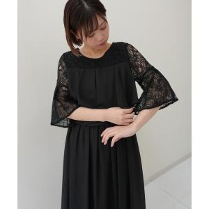 ドレス フレアデティールレーススリーブドレス「大きいサイズ」