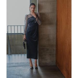 ドレス 「Callarus」Vネックチュールデザインロング丈ワンピースドレス