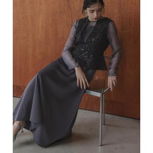ドレス コード刺繍スパンコールデザインベスト+オーガンジー使いワンピースドレス「Callarus」