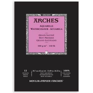 ARCHES A1795099 Aquarelle 100% Satin 300 g Glued Pad A3 12 Sheets Natural White