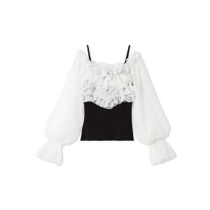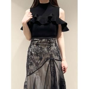 ニット セーター デザインシアーフリルニットプルオーバー レディース