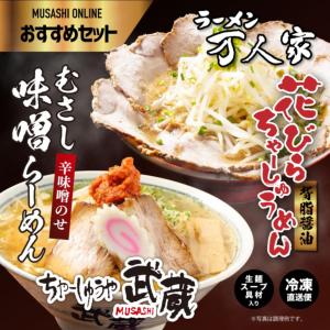 むさし味噌らーめん(辛味噌のせ) (2食入り) & 万人家 花びらチャーシューメン(2食入り)