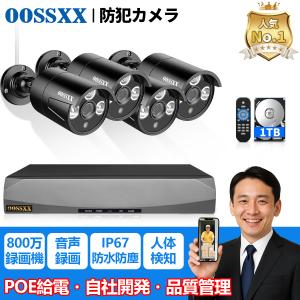 防犯カメラ 屋外 家庭用 防犯カメラセット 4台 電源不要 500万画素 PoE 監視カメラ 電源不要 屋内 室内 録画機セット 業務用 監視カメラセット スマホ対応