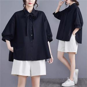 ブラウス レディース トップス 半袖 五分袖 大きいサイズ ゆったりシルエット リボン レディに着こなせるシャツ デイリー使いにも お仕事服としてもOK