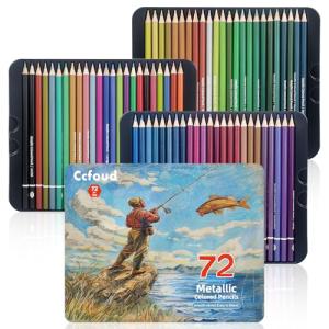 色鉛筆 メタリック 72本のカラーペンシルセット 金属色 油性 色鉛筆 プロ専用ソフト芯色鉛筆セット 子供から大人、アーティストまで理想的な塗り