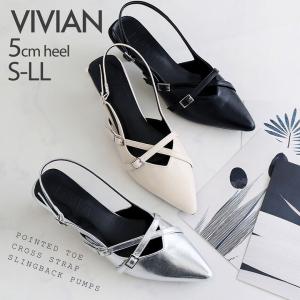 パンプス 痛くない 歩きやすい アンクルストラップ セパレート 結婚式 5cm ヒール くびれ ストラップ スリングバック ポインテッドトゥ ZOZO V3343AL VIVIAN