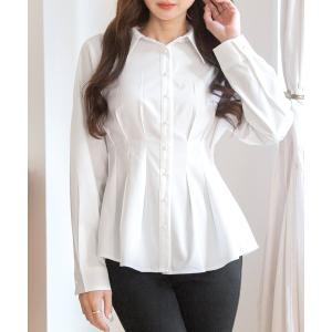 ブラウス シャツ パールボタン 美くびれ ペプラム シャツ レディース
