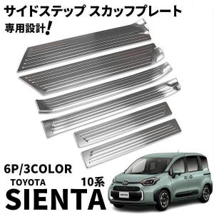 トヨタ 新型シエンタ 10系 パーツ サイドステップ スカッフプレート サイドドアステップガード SUS304ステンレス製 6P 選べる3色 サイドステップ 内側 外側