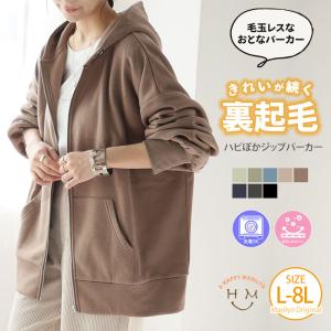 大きいサイズ レディース パーカー 裏起毛 ハピぽか ゆったり ジップパーカー 毛玉になりにくい スウェット ライトアウター LL 3L 4L 5L 6L 7L 8L 冬 A