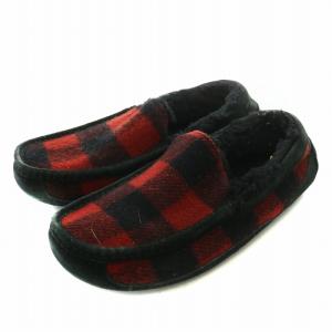 アグ オーストラリア UGG australia スリッポン モカシン ムートン ボア チェック柄 総柄 US10 28cm 黒 ブラック 赤 レッド 1008303