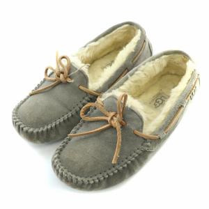 アグ オーストラリア Dakota ダコタ モカシン スリッポン フラットシューズ スクエアトゥ スエード リボン US5 グレー 5612 /BB ■OF