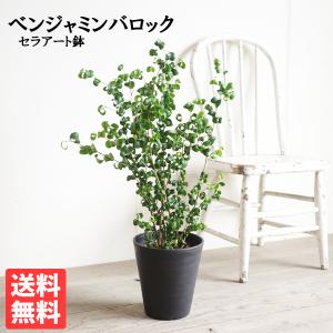 ベンジャミン バロック 黒色セラアート鉢植え 観葉植物 ベンジャミンバロック 送料無料 中型 即日出荷