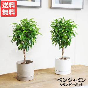 ベンジャミン ゴムの木 シリンダーポット 選べる2色 送料無料 観葉植物 フィカス ベンジャミン
