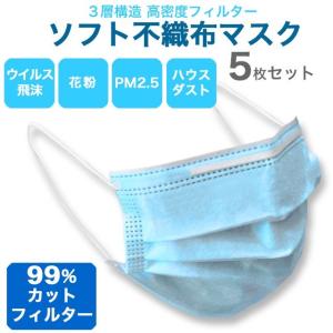 マスク 使い捨て 3層構造 即納 ウイルス対策 花粉 飛沫 予防 大人 男女兼用 国内出荷 女性 男性 レギュラーサイズ 柔らか ソフト不織布マスク5枚セット