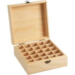 エッセンシャルオイル 収納ケース 木製 アロマオイル 収納ボックス 木箱 精油 瓶 容器 香水(原木色, 25本収納)