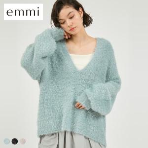 ニット セーター ウール混emmiロゴクルーネックニットトップス レディース