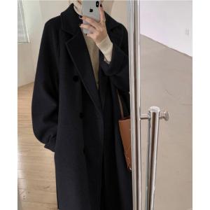 コート チェスターコート ベルト付きニットメルトンロングチェスターコート レディース