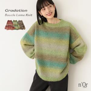 ニット 長袖 レディース トップス セーター ブークレニット ラメニット グラデーション クルーネック パフ袖「メール便不可」「30」