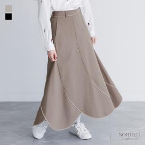 スカート レディース ボトムス フレア ロング丈 コットン100% 綿100% パイピング オシャレウォーカー 「メール便不可」「20」