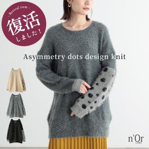 ニット レディース トップス 長袖 セーター プルオーバー シャギー ドット柄 アシンメトリー【メール便不可】【30】