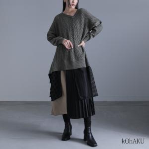 ニット 長袖 レディース トップス セーター クルーネック 異素材 配色 アシメ レイヤード モヘアタッチ モヘヤタッチ 返品交換不可 「メール便不可」「40」