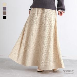 ニットスカート レディース ボトムス ロングスカート Aライン ケーブル編み シャーリング ストレスフリー 無地 「メール便不可」「40」
