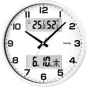 掛け時計 アナログ ダブルポスト 静音 連続秒針 温度 湿度 日付 曜日表示 ホワイト W-766WH-Z 直径32cm MAG(マグ)