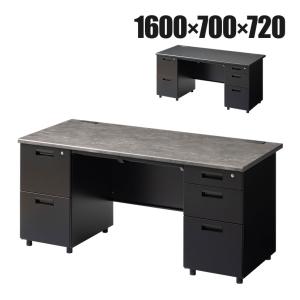 法人様限定 スチールデスク ブラック EX 両袖机 オフィスデスク 引き出し 幅1600 奥行700 高さ720 配線穴 事務机 ビジネスデスク