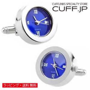 カフスボタン カフス シルバー & ブルー ラウンド 時計 時計付 カフリンクス メンズアクセサリー