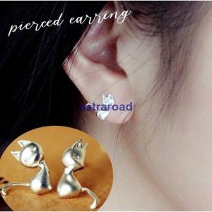 スタッドピアス レディース 女性用 アクセサリー シルバーカラー 猫 ネコ ねこ モチーフ 高見え カジュアル おしゃれ 大人可愛い かわいい キュー