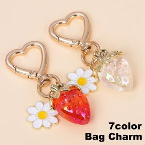 バッグチャーム キーホルダー キーリング いちご イチゴ 苺 フラワー 花 ハート カラビナ クリアカラー 立体 キラキラ かわいい おしゃれ キュー