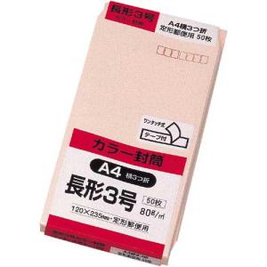 キングコーポレーション ソフトカラー封筒 長3 ピンク 50枚入 テープ付