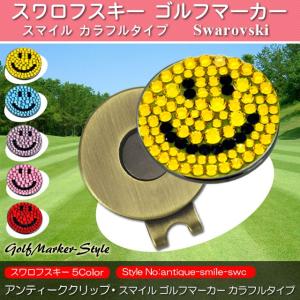 ゴルフマーカー スワロフスキー カラフル スマイル アンティーククリップ