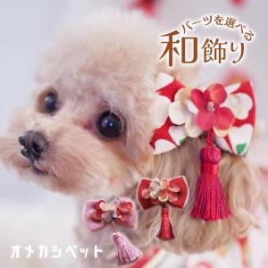 犬 ヘアピン 衣装 桃の花 わんちゃん 全犬種 ちりめん和飾りリボンと金粉紫陽花タッセル プラスチックバレッタ 和飾 ペット用 耳飾り バレッタ