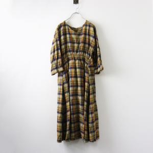 【期間限定価格】スタジオクリップ studio CLIP コットン マドラスチェック ギャザータックロングワンピース F/カーキ ドレス チュニック【2400014419436】