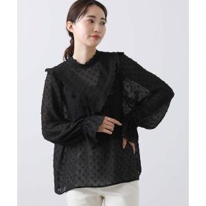 ブラウス シャツ ドット刺繍レースクルー レディース