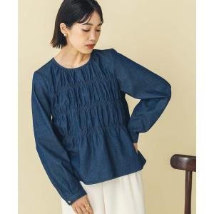 ブラウス シャツ デニムシャーリングクルーネックブラウス レディース