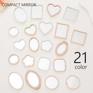 コンパクトミラー 手鏡 ハンドミラー レディース 女性 メイク用品 コスメグッズ 持ち運び 持ち歩き 日用品雑貨 フェイクパール ラインストーン 楕円